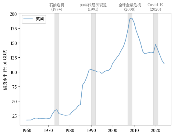 下面的图表显示了1970年到2022年英国银行对私营部门的国内信贷占 GDP 的百分比。。
