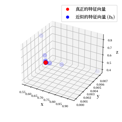 请注意,向量场收敛于\(A\)的最大特征值对应的特征向量,并从\(A\)的最小特征值对应的特征向量发散。