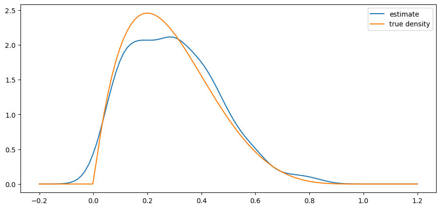 def plot_kde(ϕ, x_min=-0.2, x_max=1.2):