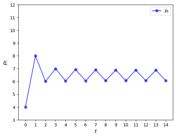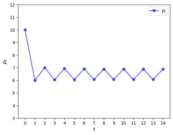 Consider the sequence of prices starting at \(p_0\), as shown in the figure.