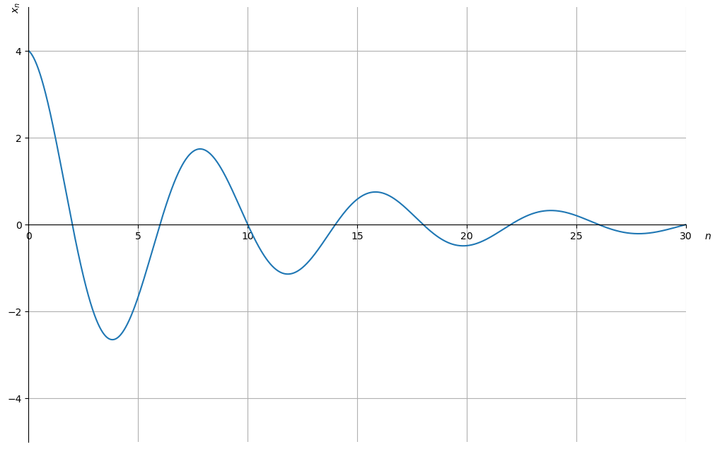 x = lambda n: 2 * p * r**n * np.cos(ω + n * θ)
