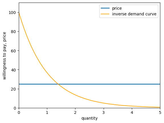 As before, the vertical axis measures willingness to pay, while the horizontal axis measures quantity.