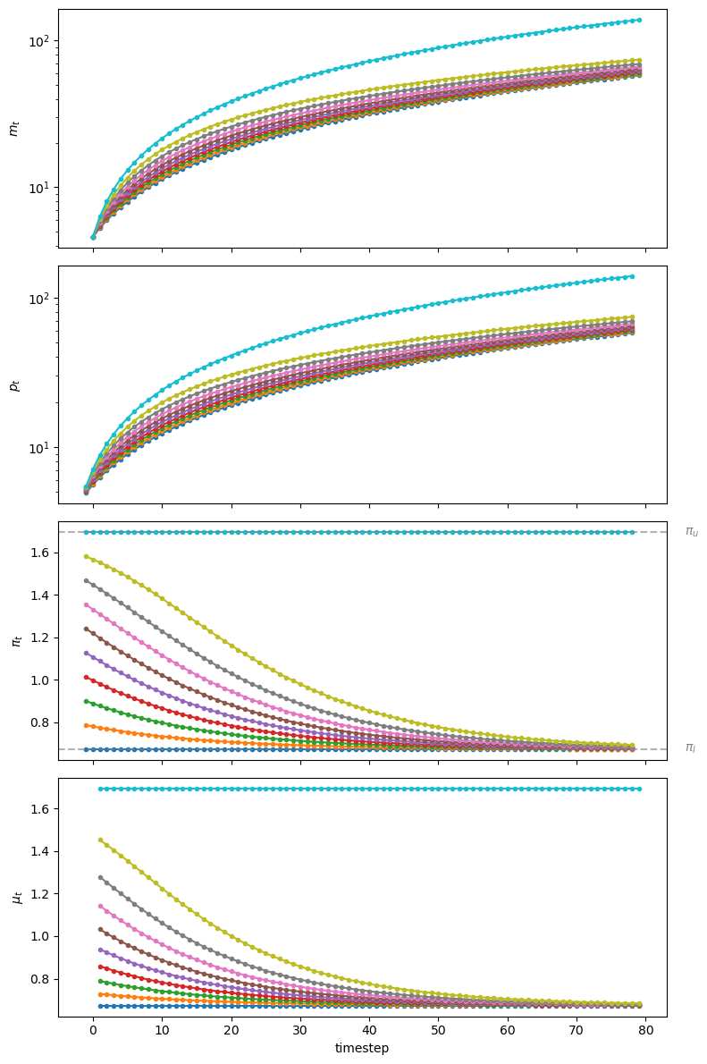 return π_seq, μ_seq, m_seq, p_seq