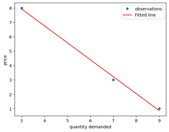 We do this by repeatedly observing the price and quantity (for example, each month) and then choosing \(m\) and \(n\) to fit the relationship between \(p\) and \(q\).