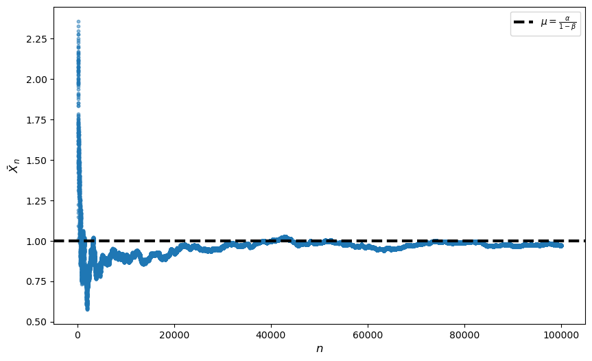 Show that LLN convergence holds using simulations with \(\alpha = 0.8\), \(\beta = 0.2\).