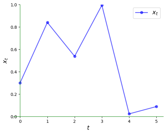 In this setting, \(S\) is called the state space and \(x_t\) is called the state variable.