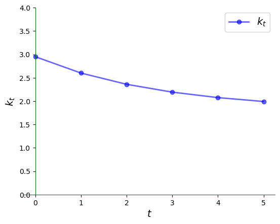 We can plot the time series of per capita capital corresponding to the figure above as follows: