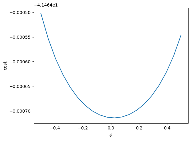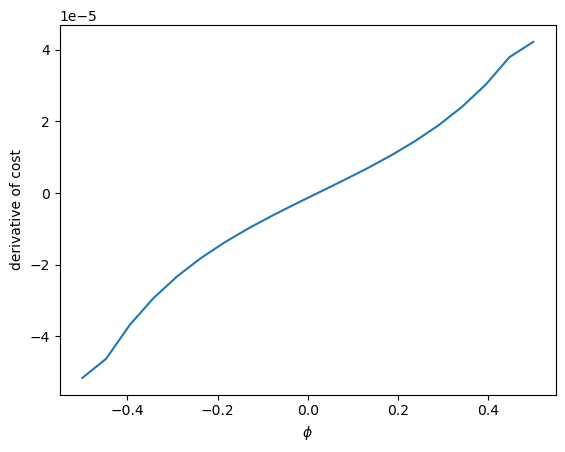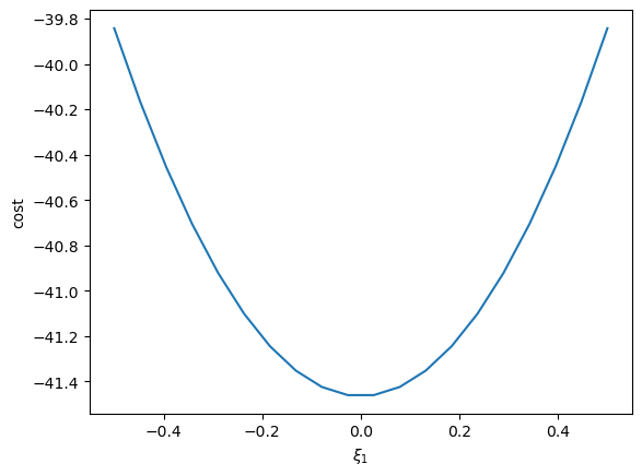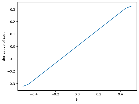 Then we can visualize the relationship between cost and \(\xi_1\) and compute its derivatives