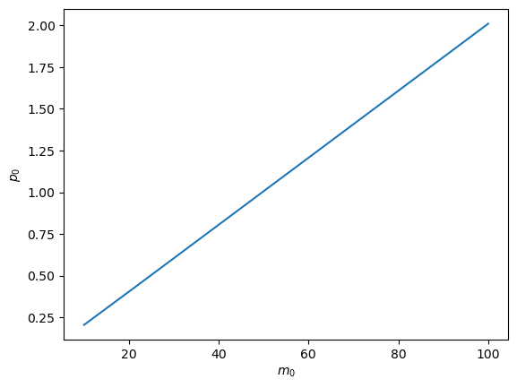Notice that the slope of \(p_0\) as a function of \(m_0\) is constant.